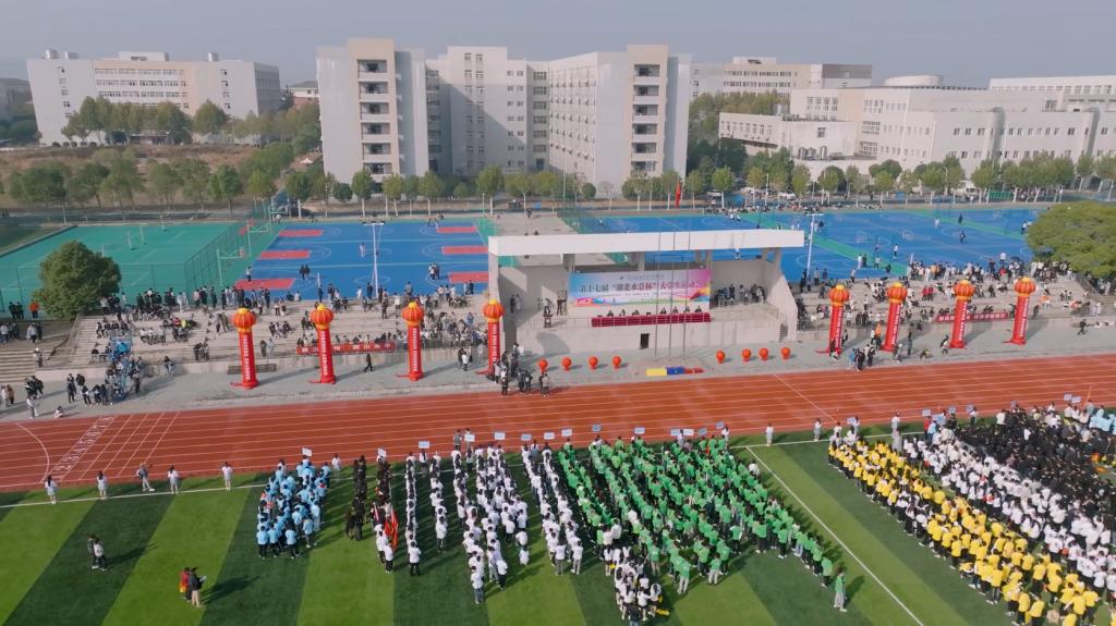 11月17日上午,運動會開幕式在湯遜湖校區田徑場隆重舉行。伴隨著雄壯激昂的運動員進行曲,英姿颯爽的國旗儀仗隊、仿若一片彩色海洋的彩旗隊、花團絢麗的鮮花隊與各系代表團的運動員精神抖擻,邁著矯健步伐、整齊劃一依次入場。隊伍行進中,部分系部學子還展示了學生們參與國家和省級技能大賽獲獎的機械、電子作品和橋梁、民居等建筑實訓制作精品。各系還以文藝表演、朗誦、隊形變換、模特表演等形式依次展示了系部教育教學成果,各具特色、精彩紛呈。整個入場式和節目展演充分展現了我院學子蓬勃朝氣與飽滿的精神狀態。